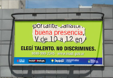 A través de enormes recortes de avisos clasificados de selección laboral con requisitos discriminatorios habituales -buena presencia, edad acotada, entre otros- buscamos generar reflexión y polémica sobre el tema. La campaña fue pautada en vía pública, tanto en carteleras como en transportes.