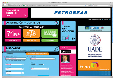 El primer sitio integral y específico para orientación vocacional y búsqueda de carreras universitarias. Una interfase clara para presentar con equilibrio las diferentes opciones de contenido, con una estética contemporánea adecuada al público adolescente y joven.
