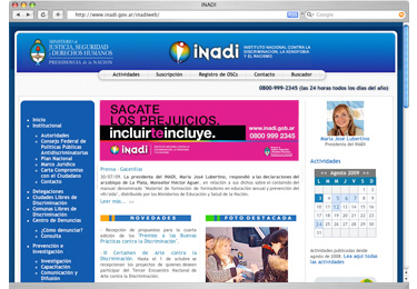 El desafío de este trabajo fue reflejar la extensa gestión del INADI en un sitio simple, que cumple con las normas de accesibilidad para personas con discapacidad y permite un acceso directo a las diferentes secciones: sectores del organismo, programas en vigencia y noticias actualizadas.